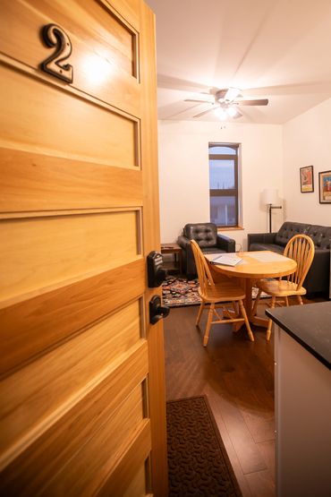 Our Historic Lodging Suites are located in the center of Elkader's Main Street Cultural and Shopping District, the perfect choice for your extended stay or bed & breakfast lodging. Each suite** has been fully renovated with modern amenities. Nestled above Gear Elkader outdoor adventure store and cafe, with on street or public parking lots within one block for your convenience. High speed wi//fi, smart tv's, air conditioning, full kitchen in 3 of our suites, and fully furnished to create your meals. state of the art coffee makers with fresh onsite roasted coffee to start your day. Add prepared breakfast in our cafe to your booking.